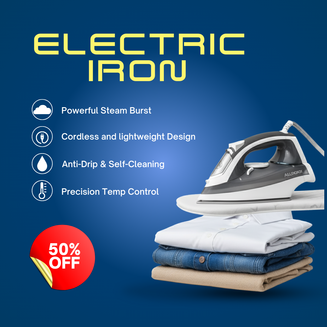 Experience wrinkle-free clothes in minutes. This durable iron features fast heating, adjustable temperature settings, and a non-stick soleplate for effortless gliding. Safe, efficient, and built for everyday use.